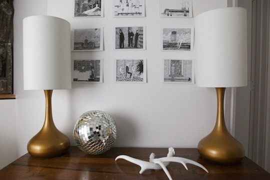 I'd imagine it would be quite pleasant to spend time in this Virginia home, featured on Apartment Therapy. The huge windows and open floor plan are great, but I especially like the details -- the black and white elements, global accents and little surprises like a mini disco ball on display.